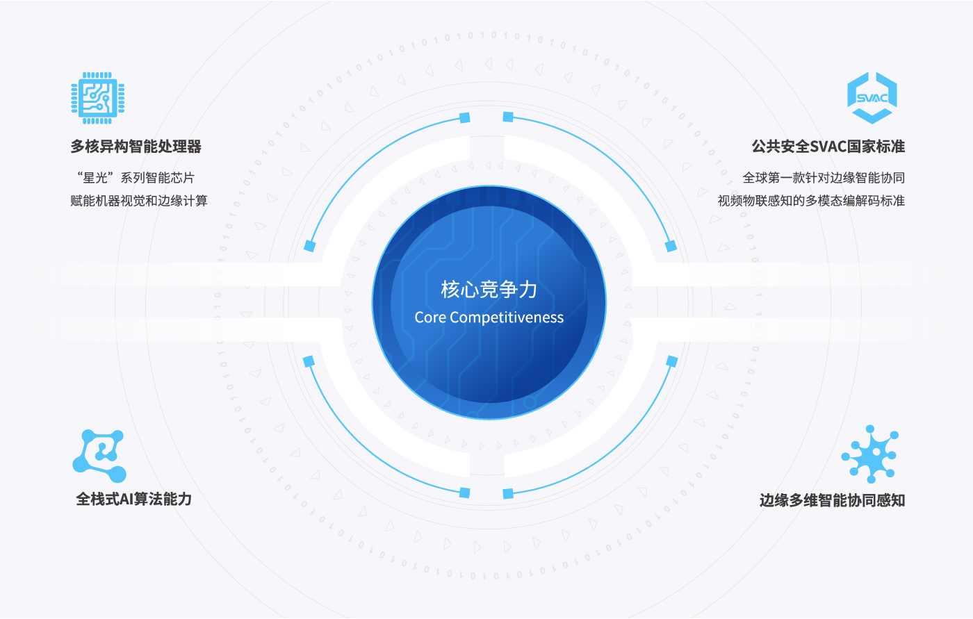 中星微技術(shù)是SVAC芯片技術(shù)的引領(lǐng)者,具有行業(yè)領(lǐng)先的系統(tǒng)級SVAC主芯片開發(fā)能力,擁有國際領(lǐng)先自主知識產(chǎn)權(quán)的XPU多核異構(gòu)處理器架構(gòu)和人工智能算法,并多次榮獲世界級競賽獎項,近年來發(fā)布的具有低功耗、超高清、NPU、 加 密 等獨特優(yōu)勢的新一代高算力雙模SVAC2.0+H.265+NPU芯片,鑄就了堅實的底層技術(shù)優(yōu)勢。